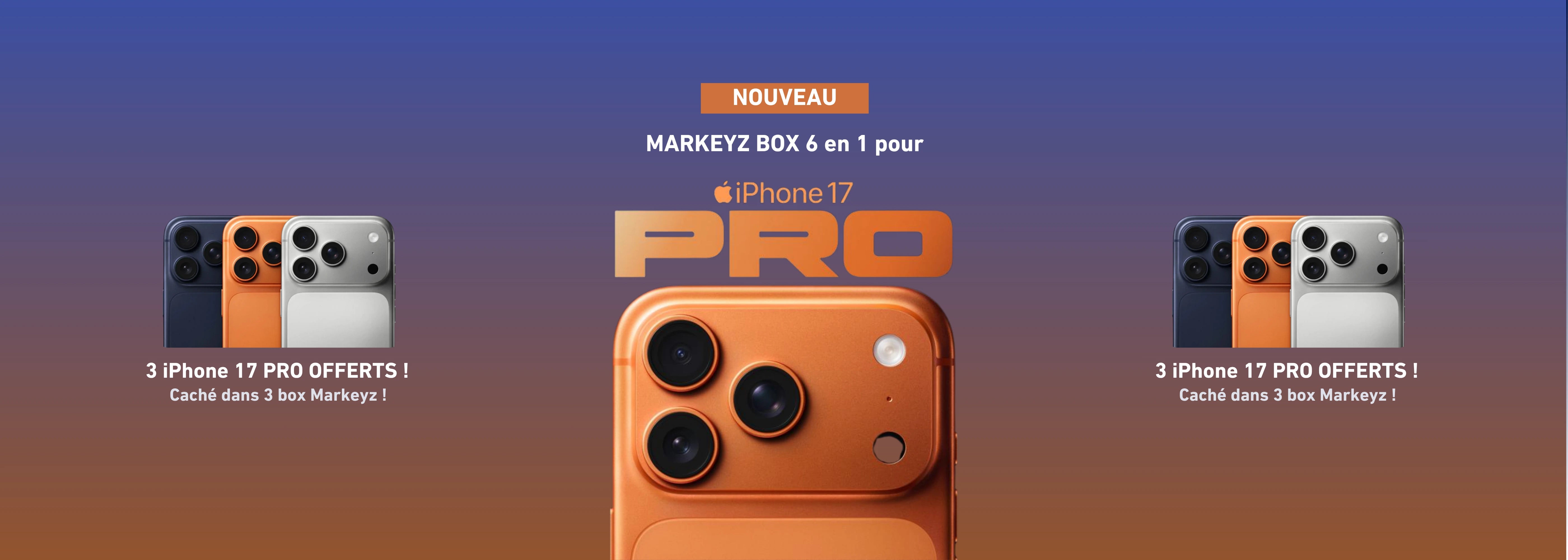 La box markeyz inclut une batterie à induction MagSafe, des Ecouteurs (2ème génération), une coque transparent MagSafe, un chargeur USB-C 12 W, un câble Lightning et un câble de chargement par induction MagSafe.